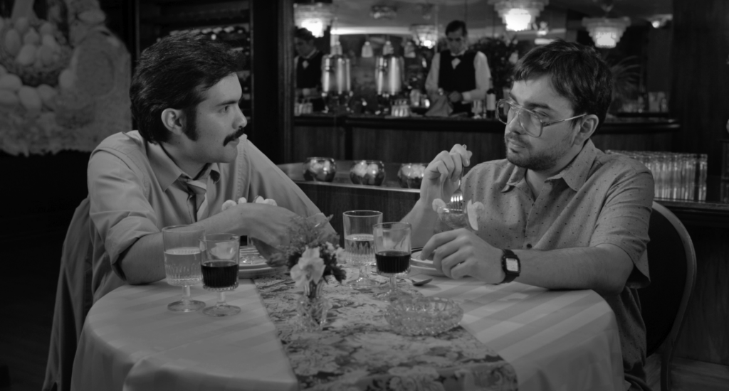 Un film en blanco y negro, que cautiva desde el primer instante por su nitidez, por la claridad de esos diálogos que nos van abriendo como un abanico por donde van cada uno de esos dos personajes, dos amigos que se encuentran, casualmente, tras muchos años sin verse. Uno puede tender a pensar los vuelcos que puede dar el guion, inspirado en algunos hechos reales, pero sorprende porque no es lo previsible. Destaca toda una toma, unas secuencias en un restaurante donde los diálogos van directamente a exponer el capitalismo, el sueño americano, las escalas sociales y los prejuicios ante la sociedad a nivel moral, económico y social. Una buena estructura fílmica que añade potencia al fondo de la película.