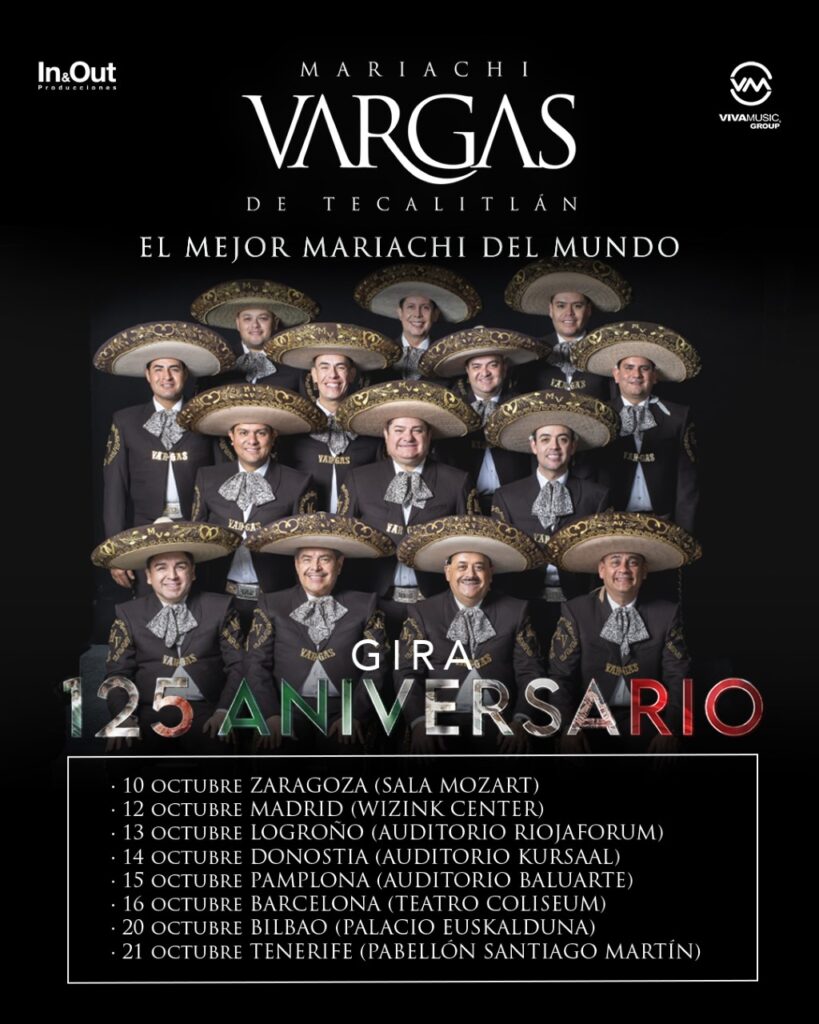 Mariachi Vargas de Tecalitlán llega a su 125 cumpleaños, evolucionando y asentándose en la sexta generación que imprime nuevos aires a su repertorio, pero siempre sin dejar de lado la sonoridad y el género del mariachi. Hemos tenido al oportunidad de hablar con Arturo Vargas, voz y guitarra desde 2002 y Ángel López, voz y violín desde 2018, para que nos hablen de su evolución y de la gira que van a tener por primera vez en nuestro país.