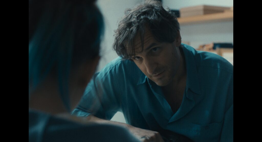 La idea de trabajar con los tonos azules era más una búsqueda de una re significación del color azul. El azul está asociado a la masculinidad, a los niños, y me apetecía encontrar esa feminidad dentro de un color que normativamente no va de la mano. El trabajo con el azul nos ayudó también a acentuar la sensación de frialdad de la propia historia, aunque siempre buscando una luz que aportara aire al espectador/a.
