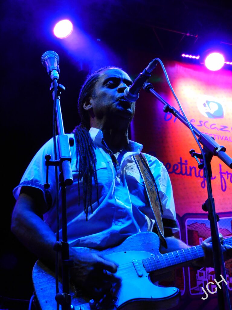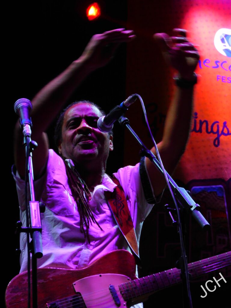 Blues moderno, rock salvaje y gospel, a veces lentito para mucha gente, pero cañero, y en su punto, en esencia para el que entiende de blues, era lo que desprendía el segundo de los artistas de la noche, y no es otro que Joe Louis Walker, que llenaba la plaza de toros de Blues Cazorla. Joe puede que sea el alma del grupo, pero la percusión cobra protagonismo durante toda la actuación, destacando por encima del resto de la banda. Quizás, por ello, por dejar hacerse notar unos más que otros no percibimos tanta entrega en conjunto como con otras formaciones.