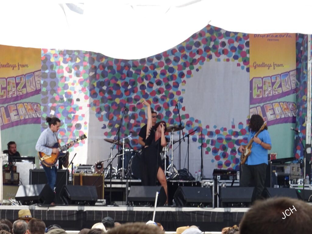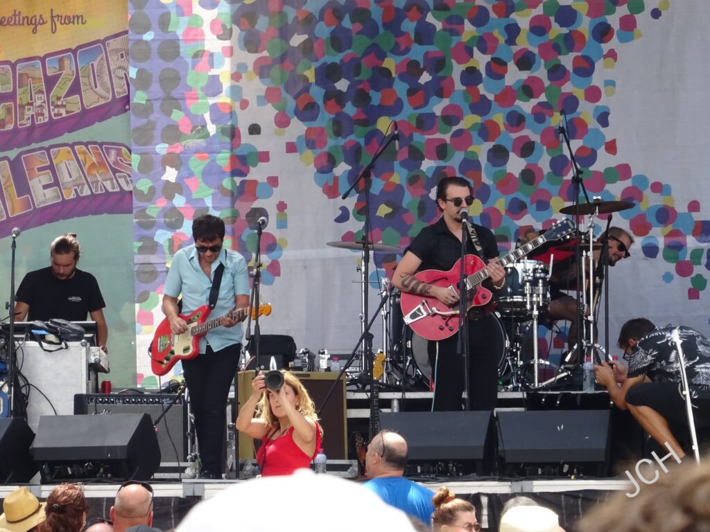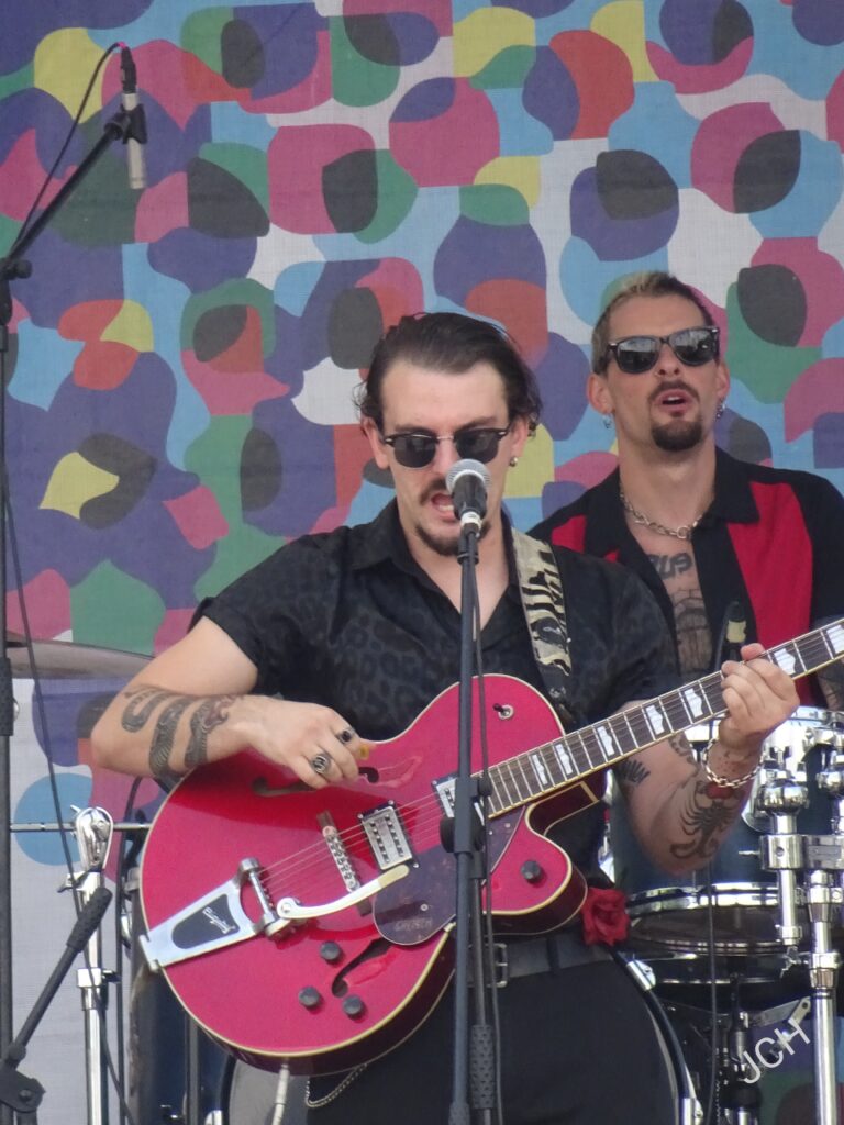 Sonidos de rockabilly dieron el pistoletazo de salida de la actuación de Kitty, Daisy & Lewis. Los hermanos londinenses fueron apareciendo uno a uno en escena y uniéndose al tema con el que comenzaron y que arrancó con la percusión. Una formación que destaca por mezcla el rockabilly, swing, country, blues, R&B y Rock and Roll, pero con un estilo que se acerca al rockabilly revival, al country vintage y a los originarios del blues. Los tres se fueron alternando y turnando en casi todos los instrumentos y también como vocalistas, algo que es seña de identidad de la formación.