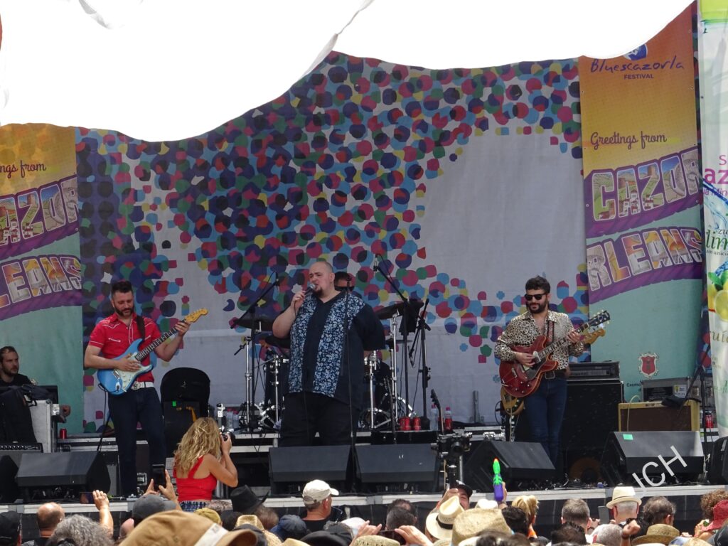 Pudimos disfrutar de A Contra Blues, formación que se formó en Barcelona en 2005, y con una gran repercusión a nivel europeo tanto de rock como de blues. Destaca en el grupo la voz de Jonathan Herrero, que se ve arropada por la banda al completo. Su potencia vocal dejó a los asistentes a la Pza. Santa María boquiabiertos. Nadie mejor que Betty & the Bluestomps para comenzar una mañana de un sábado festivalero. La banda de versiones puso el toque de marcha necesario para arrancar el último día del festival. Posteriormente, nos deleitaron Osidados, grupo de blues-boogie-funk madrileño con letras en castellano, con Osi Martínez a la armónica con melodía que es deleite para los oídos, potenciado por la marcha y el ritmo del guitarrista. Vargas Blues Band, con Javier Vargas a la cabeza hicieron vibrar la plaza con su sonido propio de blues rock, y vuelven a dar la talla con Magic of the gods, donde la guitarra lleva el ritmo y el sonido para enganchar al público. Totalmente hipnotizante.