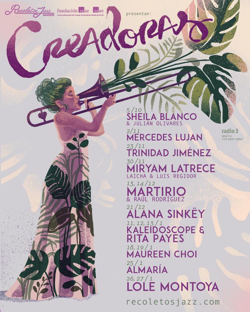 El ciclo Creadoras, realizado en colaboración con la Fundación SGAE, no es nuevo, ya estaba en su anterior andadura, queriendo apoyar de esta manera el talento femenino en la música y especialmente en el jazz. En esta etapa estarán, ya programadas, Lole Montoya, Martirio, Sheila Blanco, Rita Payés, Lucía Fumero, Cecilia Krull, Mercedes Luján, Alana SinKëy, Miryam Latrece, Maureen Choi, Almaría y Trinidad Jimenez. Son artistas que encajan en nuestra sala y además son artistas de calidad, que es algo que nuestro público nos exige. La elección siempre se hace a conciencia.