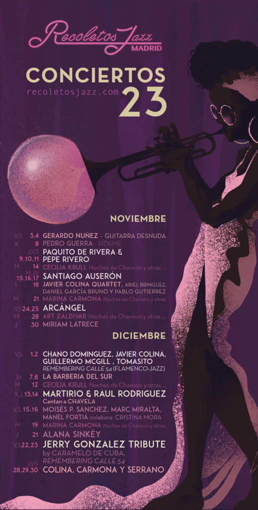 El cartel de los meses que ya tienen anunciados, de septiembre a diciembre, tiene una gran variedad, un abanico dentro del jazz, donde la fusión cobra fuerza en muchos estilos: Siempre digo que desde que el humo deja de existir en las salas de jazz, el concepto de club de jazz se cambia totalmente. Ya no existe el sitio de club de donde ibas a la bohemia y todo existía, ahora mismo el entorno es otro y evidentemente caben todas las músicas a las cuales consideramos como músicas de calidad fuera del espectro comercial o del mainstream, a partir de ahí nosotros siempre hemos mantenido una apuesta por el flamenco jazz que es un poco nuestra seña de identidad, la música cubana, que yo creo que también es una serie de identidad de Madrid. Es un exportador y un creador de la fusión entre flamenco, la música cubana y jazz y eso es un poco el punto que ha existido siempre y que también han tenido otras salas y un poco el sonido Madrid es ese y luego, pues evidentemente cabe gente que va desde cantautores latinoamericanos, nacionales, gente que hace música experimental… yo creo que es una manera de ser, es la creación de música en una sala relativamente pequeña con la capacidad de poder improvisar y de la cercanía con el público, es de alguna forma una filosofía musical y ahí caben muchas músicas.