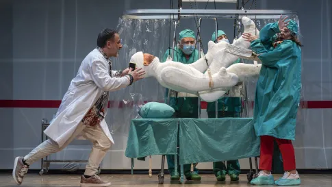 La obra Descarados, dirigida por Santiago Sánchez y basada en una versión de Dario Fo, estará en cartel en el Teatro Fernán Gómez hasta el día 2 de junio. Además, hoy sábado 18 de mayo tendrá lugar la proyección y coloquio, previa a la representación, de Soy una asamblea, documental sobre Carla Matteini, la voz que durante más de 40 años acompañó a Dario Fo tanto en España como en Iberoamérica como traductora. Esta proyección tendrá entrada libre hasta completar aforo.