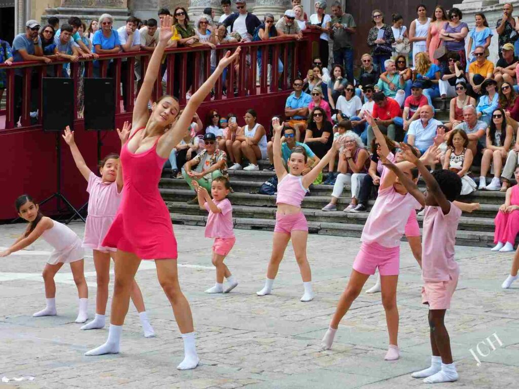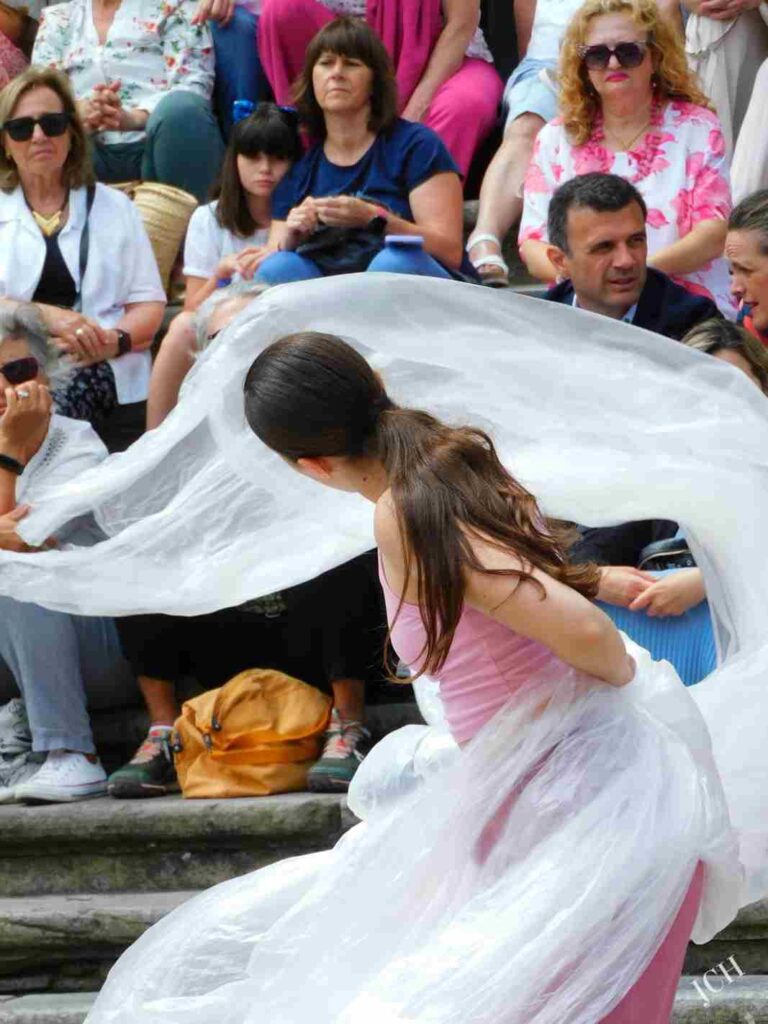 Original coreografía con gran número de alumn@s participando sobre el adoquinado de la Plaza de la Catedral. Comenzar con el futuro de la danza es una buena propuesta y todo un empuje por parte del festival que apuesta por poner en valor a las nuevas generaciones.