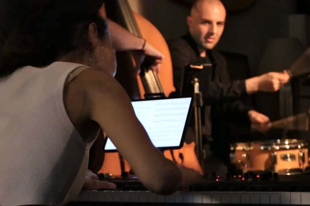 Conocí a mi marido, Joshua Wheatley, cuando terminé mi máster en España. Yo quería montar mi propio trío con mis composiciones originales, y estábamos juntos por aquel entonces, así que le propuse tocar. Así que empezamos a tocar juntos en conciertos de jazz en Valencia. Después de que el bajista anterior dejara el grupo para desarrollar su propia carrera con el bajo eléctrico, Manos Stratis también estaba cerca de nosotros cuando yo buscaba un bajista vertical. Todos estudiamos en el Berklee College of Music de Boston y un máster en Valencia, pero no nos conocimos ni nos cruzamos mientras estudiábamos. Estábamos disponibles y sabíamos que podíamos disfrutar tocando jazz juntos en ese momento. Donde estábamos y cuando Dios nos ordenó, allí estuvimos en el momento de necesidad.