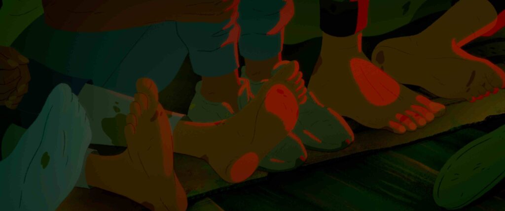 Si hubiéramos optado por imagen real, la historia habría resultado demasiado dura visualmente, especialmente en las escenas del naufragio. Con la animación, en cambio, pudimos crear una dirección artística amable y delicada, que suavizara el impacto visual sin restarle profundidad. En contraste, nuestro corto anterior, Amanece la noche más larga, tenía un estilo más feísta porque lo requería la historia. En Cafunè, en cambio, buscamos un trazo más cálido y envolvente, que acompañara la emoción sin que la dureza del relato se volviera insoportable.
