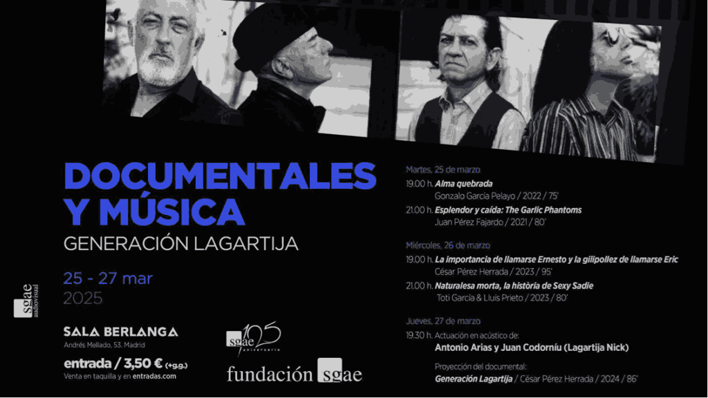 Esta semana la Fundación SGAE se centra en una programación de conciertos y documentales, Documentales y Música y Nuevos Territorios, inspirados en la banda granadina Lagartija Nick.