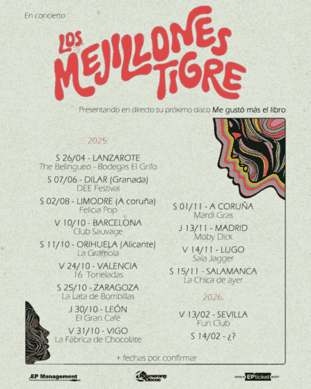 «Me gustó más el libro» es el tercer LP del sexteto jienense Los Mejillones Tigre, tras Tropical y Salvaje (2020), El Fuego (2023) y su EP LSD (2024). Su trabajo es muy variado y, cómo no, bailable y con toques de humor e ironía; esta última parte es también protagonista en esta entrevista que nos han concedido. No esperábamos menos de ellos, ya que es marca de la casa del grupo.