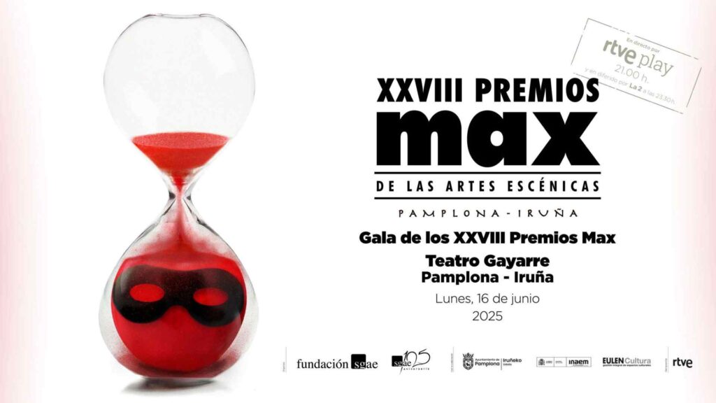 El próximo 16 de junio a las 21 horas en el Teatro Gayarre se celebrará la ceremonia de entrega de los 28º Premios Max de las Artes Escénicas Pamplona – Iruña. Esta gala será retransmitida en directo por RTVE Play, el Canal Internacional y por La 2 de RTVE en diferido (23.30h).