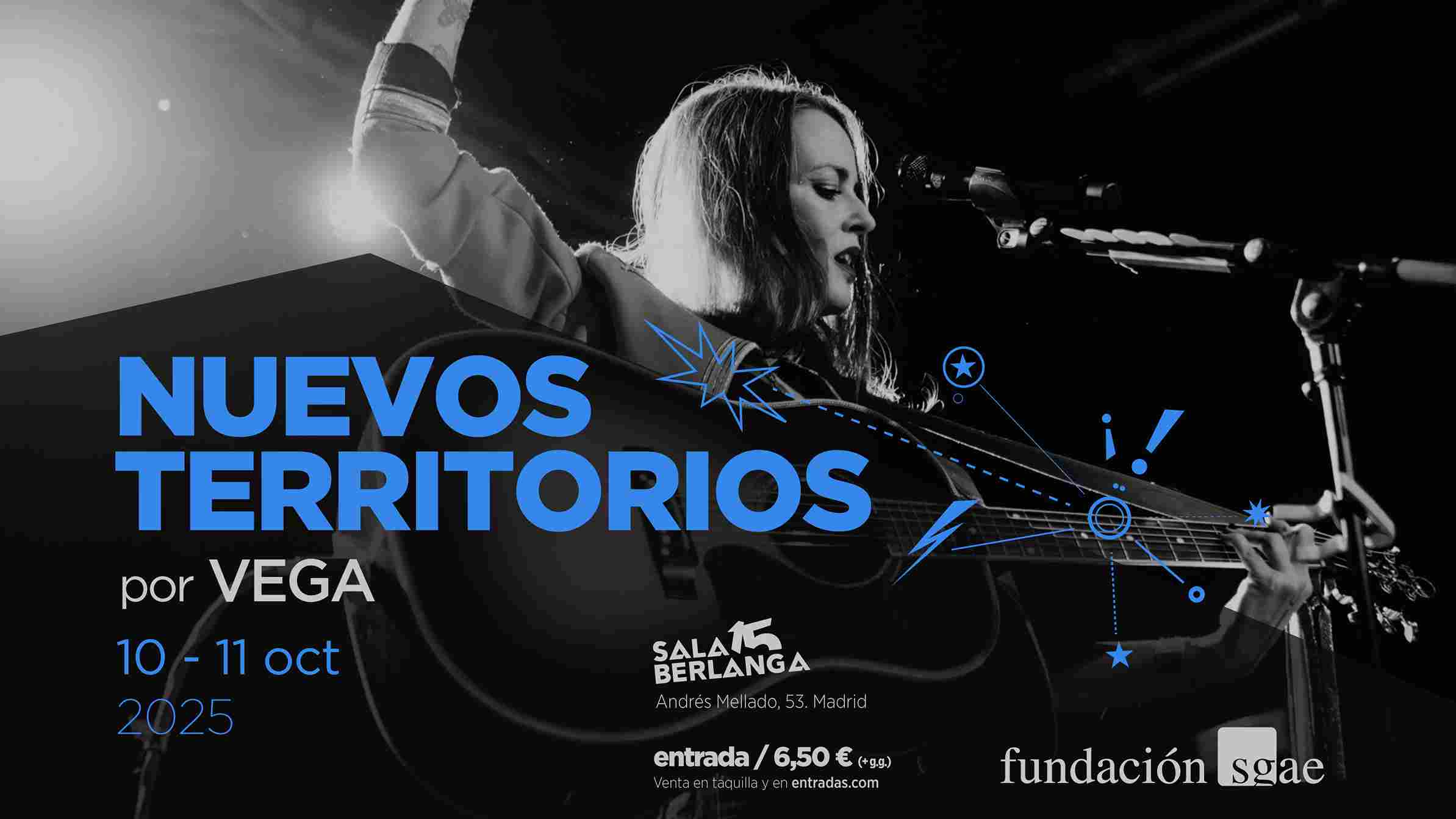 Los próximos días 10 y 11 de octubre tendremos la oportunidad de disfrutar de un nuevo ciclo de Nuevos Territorios en la Sala Berlanga. En esta ocasión, programado por Vega, quien lleva en el sector más de dos décadas, con un bagaje extenso, lleno de matices y de discos que definen a Vega, compositora y cantante. El propio ciclo es, en cierta forma, otra extensión de la música por la que lucha, la que está hecha desde la pasión y la lucha de mantenerse en la vorágine del sector musical de hoy en día.