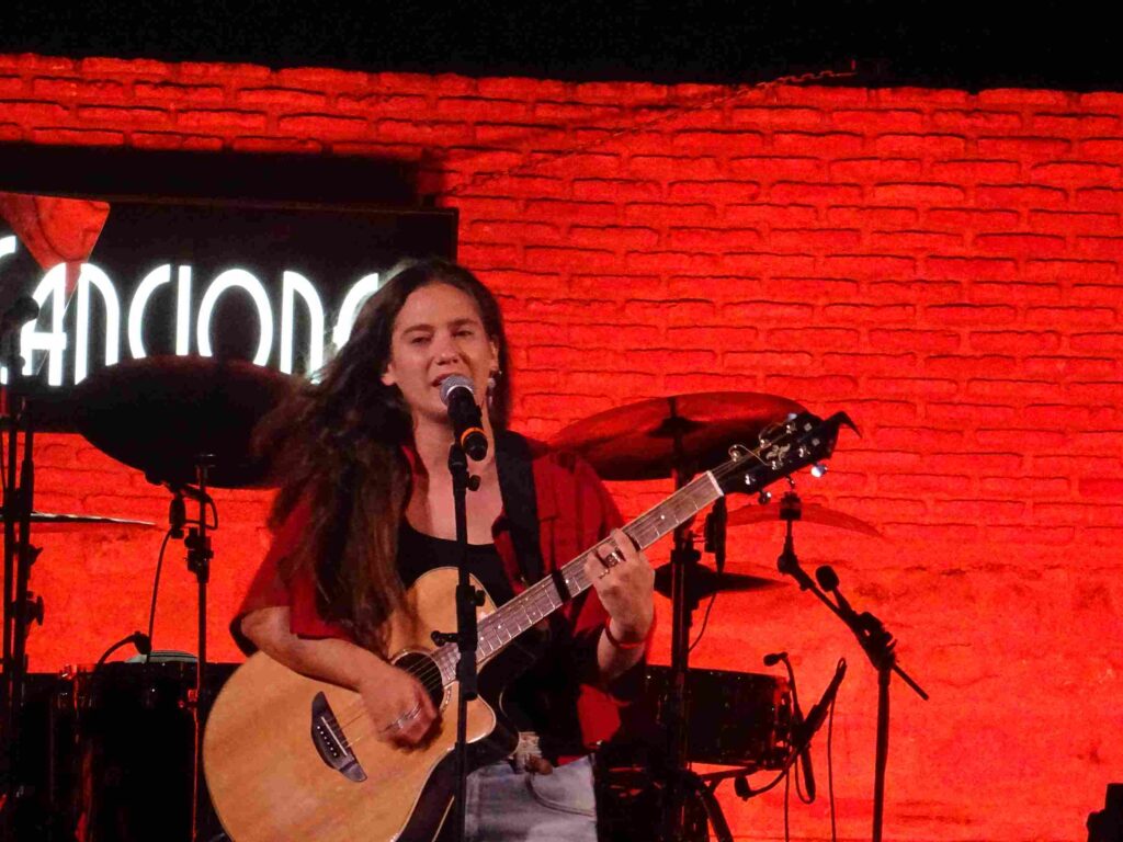El arranque fue por parte de la joven jiennense Ana Cárdenas, quien aportó la vitalidad de su edad y su ímpetu a la hora de presentar cada una de las canciones, de mostrarse tan sencilla como sus composiciones, pero con ese poso que da la música de autor, donde cada palabra tiene su significado con cada estrofa y con cada entonación. Canta a la vida, a las vivencias y a la experiencia propia, recordando mucho a su familia, por lo que hizo de su concierto algo totalmente cercano, sensible y natural. Sus letras nos llevan por ensalzar a la persona, por el hecho de hacerse valer uno mismo. Al inicio ella misma nos dijo que cuenta y canta, y lo pudimos disfrutar; su voz nos invita a ver cada una de sus canciones como una reflexión, como quien establece una conversación de tú a tú. Durante su actuación nos deleitó con canciones de su último EP “El Viaje Elemental”, con el que nos trasladó a la piel de lo humano. Con la canción «La normalidad» nos llevó por melodías de vals, dando un toque distinto a su concierto.